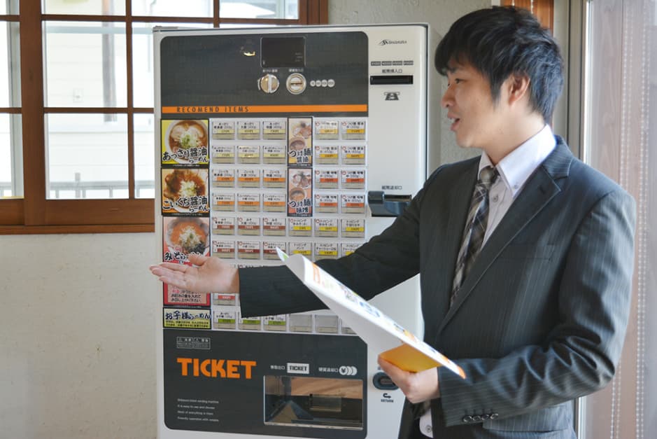 券売機を使った店舗運営をお考えの方に、開業に必要なツール(メニュー表、各種印刷物、システム等)をソリューションとして納品~サポート(修理・メンテナンス)までを担う仕事です。